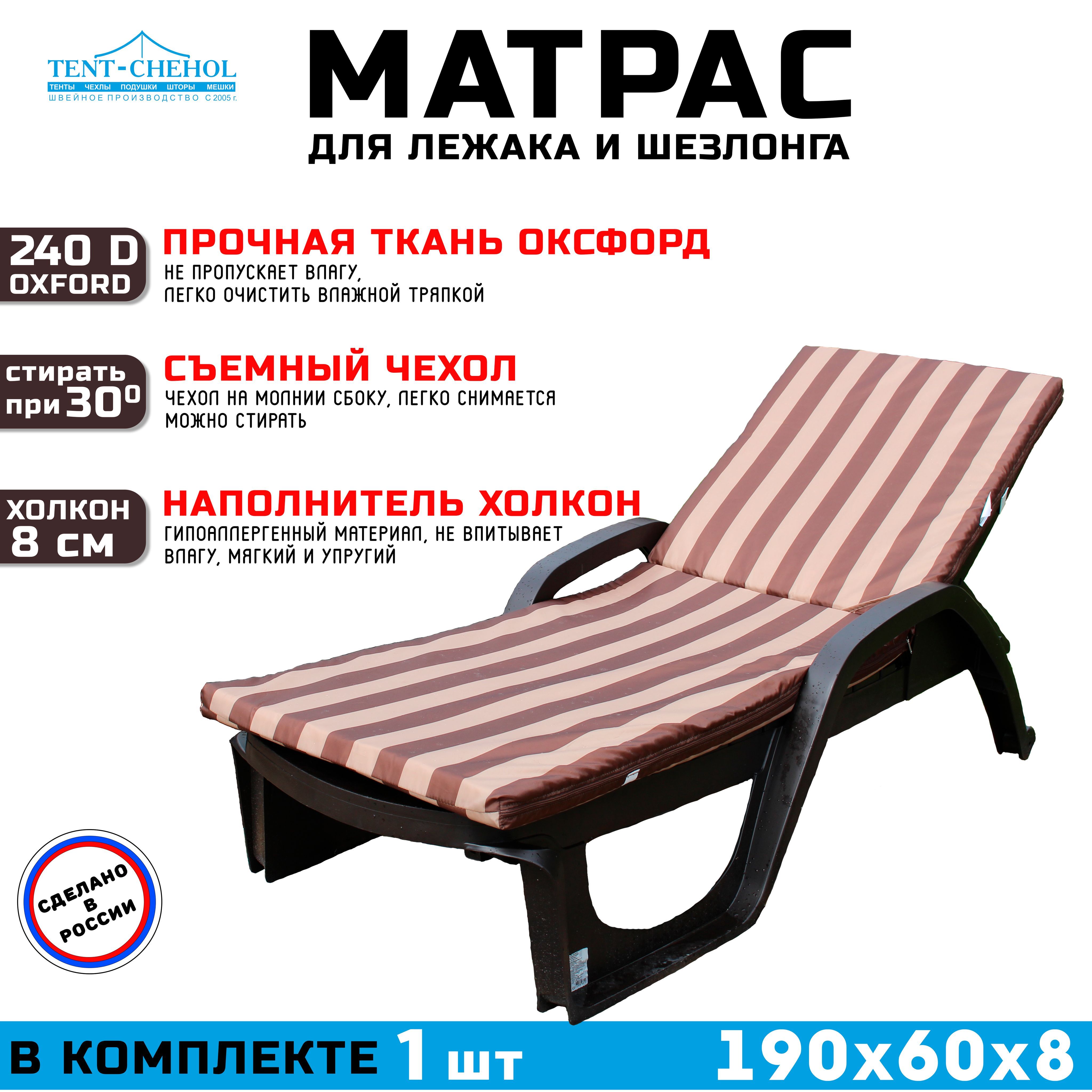 Краткое описание «Матрас для шезлонга и лежака 190х60х8 (бежево-коричневый)»